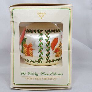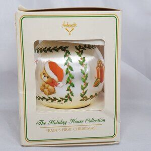 This 1980 satin ornament from The Holiday House Collection by Ambassador is an ideal keepsake for celebrating a baby's first Christmas. Featuring a charming teddy bear design, it adds a touch of nostalgia and joy to holiday decorations.