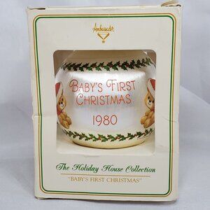 Babys First Christmas 1980 Satin Ornament By Ambassador