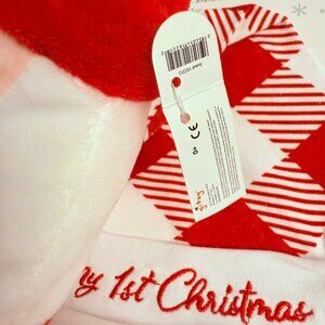 Babys First Christmas Gift Set Embroidered Hat Booties Bibs Blanket Santa Plush
