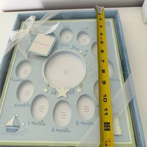 Capture your baby's first year with this charming blue photo frame. Perfect for displaying monthly milestones. A delightful addition to any nursery.