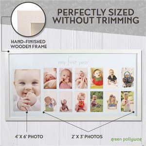 🧿Beautiful hand-finished wooden baby's first year frame that will compliment every decorative style. Perfectly sized to hold twelve 2" x 3" photos and one 4" x 6" photo without trimming!