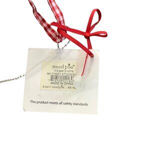 Babys My First Christmas Stocking Mud Pie Red White Santa Gingham 17” NEW