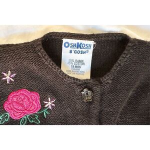 Girl’s black ramie/cotton cardigan by Oshkosh. Appliqué flowers with embroidery. Size 18months. Cute flower buttons. Beautiful condition.
