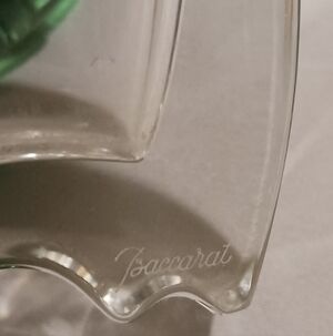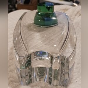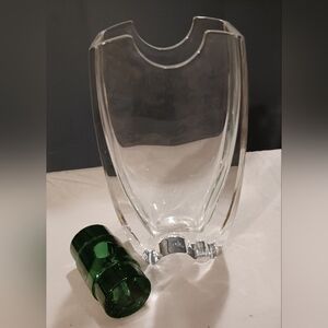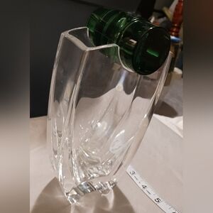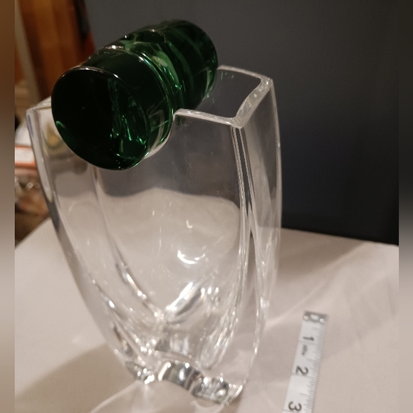 Like-New Elegant Baccarat vase with a clear body and dark green accent. Perfect for enhancing any space with sophistication.