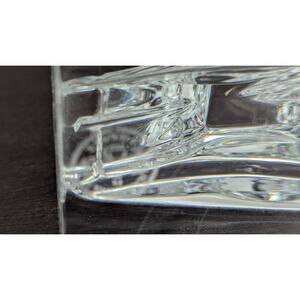 No chips or cracks, the glass is clear and beautiful. Very minor wear to the bottom.