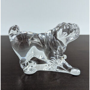 Crystal Carlin Pug Dog Sculpture Figurine Paperweight by Baccarat, France. Measures approximately 4" long. Marked with Baccarat mark on the bottom and "Baccarat" etched on the lower side. No original box.