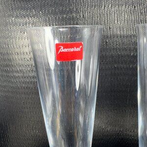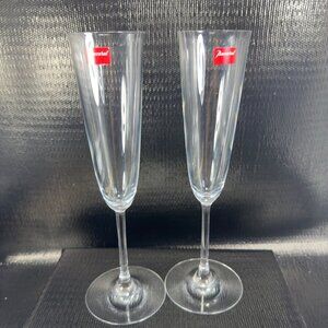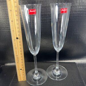 Baccarat FILAO Fluted Champagne Glass Clear Crystal Stems Signed W Stickers Set2