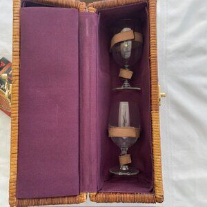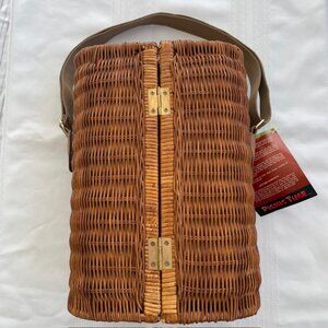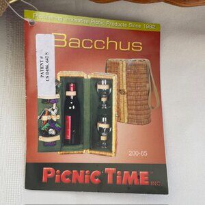Bacchus Picnic Time Insulated Wicker Wine Basket Carrier Set with Strap - NWT