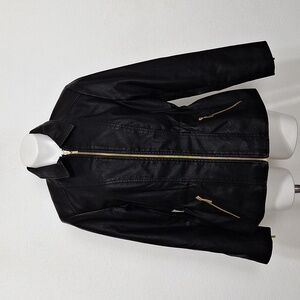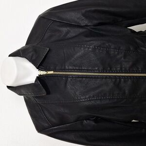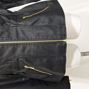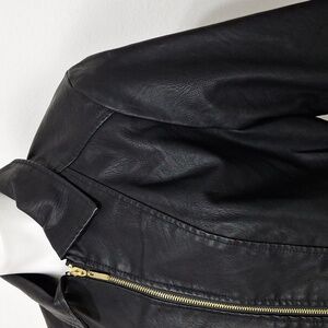 Baccini Black Gorpcore Grunge Full Zip Peplum Faux Leather Moto Jacket Size L