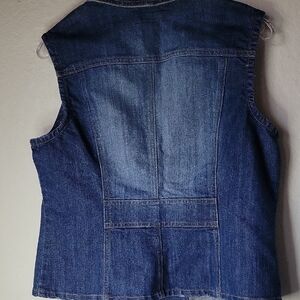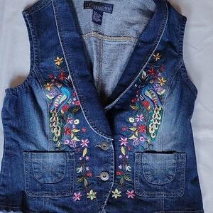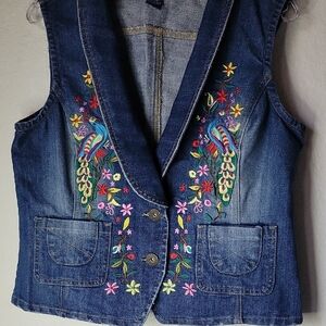 Baccini Blue Denim Vest with Colorful Floral Embroidery Size L