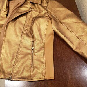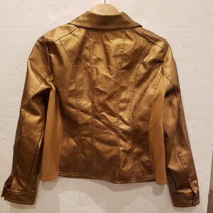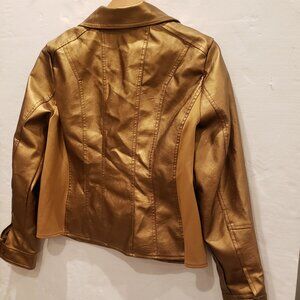 Baccini Bronze Gold Faux Leather Moto Biker Jacket Womens Large