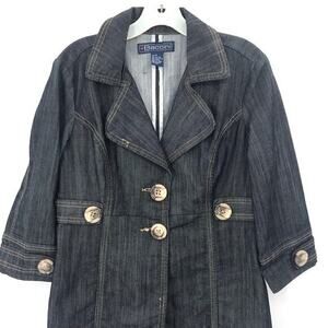 Button front jean dress with pockets by Baccini. Size medium. Excellent condition. 70% cotton, 30% polyester.