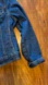 Stylish dark blue jean jacket. Features button front and classic collar. Ideal for layering.