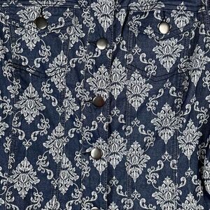 Baccini Floral Denim Style Sleeveless Button Down Collard Vest Large