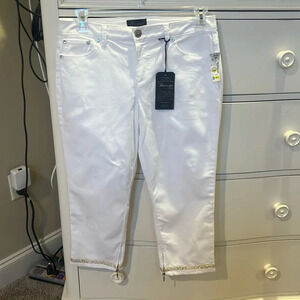 Baccini NWT White Capri Jeans with gold crystals and 5” zipper at bottom of legs