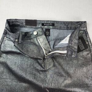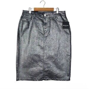 Baccini Metallic Jean Skirt Silver Denim Pencil Straight Stretch Skirt Size 8