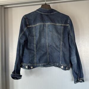 Baccini Women's Dark Wash Denim Jacket Button Front Long Sleeves sz Large