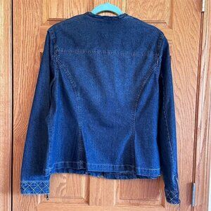 Baccini Women's Denim Jacket 1X Blue Rhinestone Zip-Up Long Sleeve Y2K