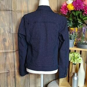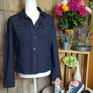 Baccini Womens SZ Medium Denim Polka Dot Button Jean Jacket Stretch Dark Wash