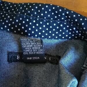 Keywords: Baccini Womens SZ Medium Denim Polka Dot Button Jean Jacket Stretch Dark Wash Coastal Nautical