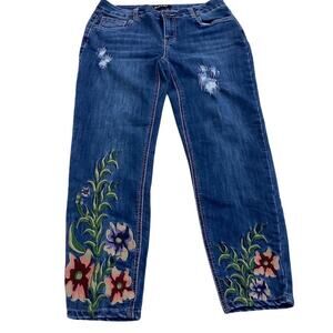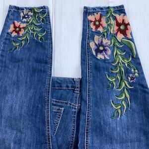 Baccini Women's Size 6 Skinny Jeans Blue Floral Embroidered Denim