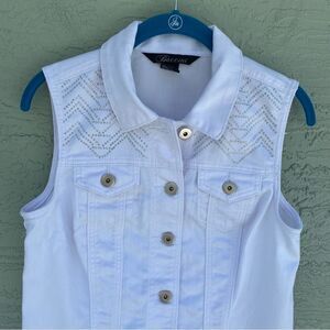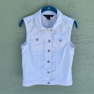 Baccini Women's Sleeveless White Denim Vest Size S Button-Down Classic C…