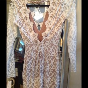 Authentic Baccio Couture long dress. Never worn with tags on it. Long lace dress...Stretch lace hand painted with metallic silicone. Crystallized with Swarovski elements.