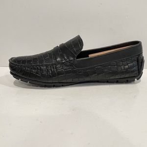 Bacco Bucci Mens Sz 8 Slip-On Black Croc Print Leather Driving Mocs Penny Loafer