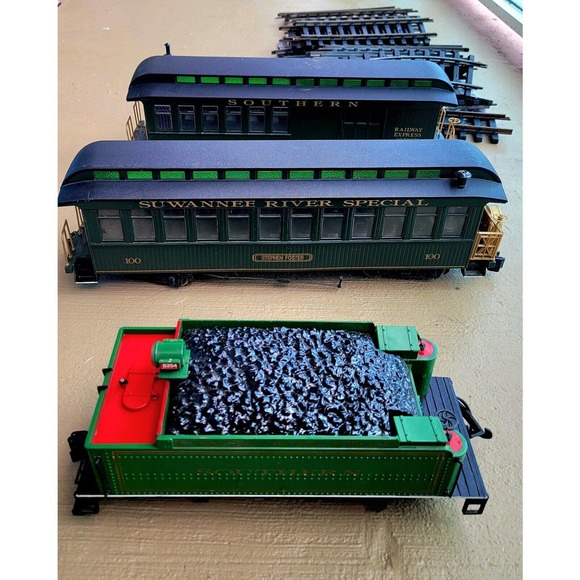 Bachmann Big Haulers Southern Railway Combination Train set,including: Suwannee reever special car, southern car ,#8254 coal carrier car and 15 trucks (6 straight and 9 curved)cars in Perfect condition .