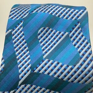 Bachrach Blue and Teal Geometric Tie made in Italy 100% Silk