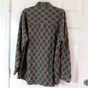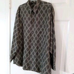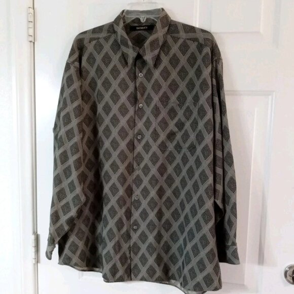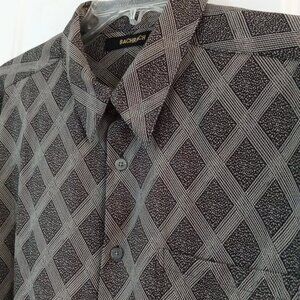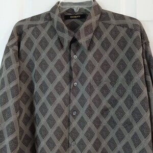 Bachrach Men's Black Geometric Print Long Sleeve Button Up Shirt XL 30% Rayon 36% Cotton 24% Polyester Measurements are Pit to Pit:26" Length:33" Very Good Condition