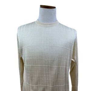 Bachrach Mens Cream 100% Silk Long Sleeve Sweater Grid Pattern Size L