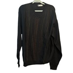 Bachrach Vintage Stripe Detail Mens Black Orange Wool Blend Sweater Sz XL
