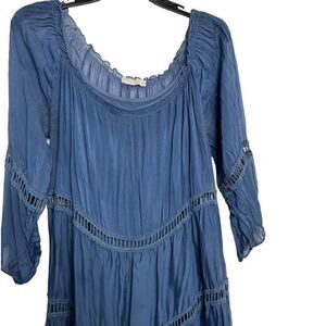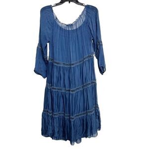 Baci Long Sleeve Tiered Mid Dress Blue Size Small