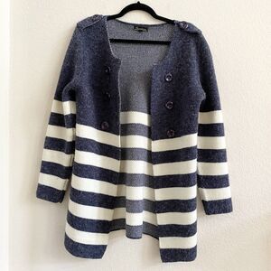 Baciano Stripe Print Open Gray Front Sweater Jacket Large