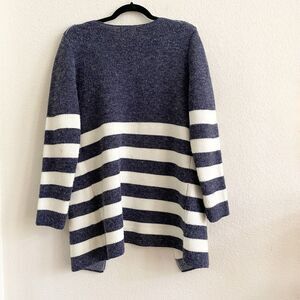 Baciano Stripe Print Open Gray Front Sweater Jacket Large