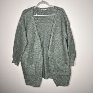 Baciano Sweater Womens Large Gray Open Front Cardigan Cable Knit Pockets Cozy