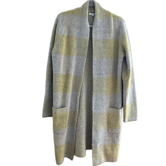 Baciano Yellow Gray Long Cardigan Car Coat with Pockets-Size Small