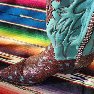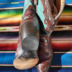 Back At The Ranch Brown and Turquoise inlay Womens Boots Size 9B Made by Liberty