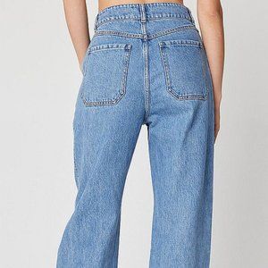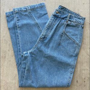 High rise, tapered at hem. slight barrel / balloon shape, dad jean style.