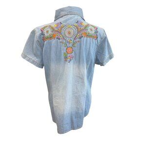 Back In The Saddle Coastal Cowgirl Floral Embroider Chambray Jean Western Shirt