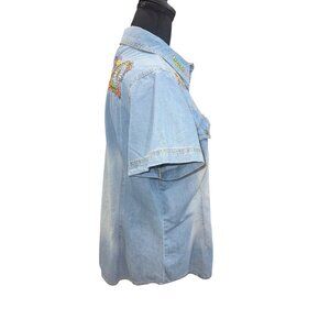 Embrace a touch of vintage charm with this Back In The Saddle embroidered denim shirt. The intricate floral embroidery adds a vibrant pop of color to its classic western design, making it both stylish and unique. Crafted from comfortable denim, this shirt is perfect for casual outings and relaxed gatherings.