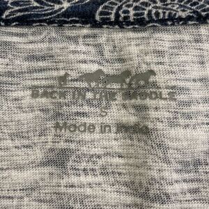 Elevate your casual wardrobe with this Back In The Saddle Women’s Top in size Small. Featuring a navy paisley print and 3/4 sleeves, this top offers a classic preppy look with effortless style. The lightweight, relaxed fit makes it ideal for everyday wear, casual outings, or layered office outfits. Pair it with jeans, skirts, or tailored trousers for a polished yet comfortable ensemble. A versatile addition to any wardrobe seeking timeless, preppy fashion.