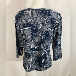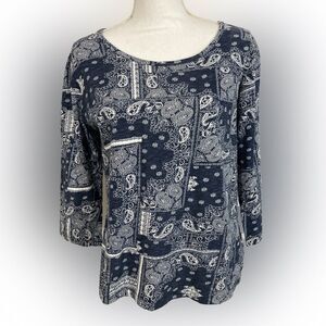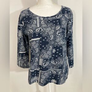 Back In The Saddle Top Women’s S Navy Paisley Print 3/4 Sleeve Preppy Blouse