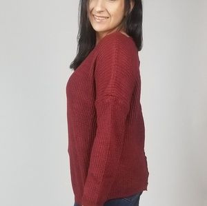 Color: Mulberry, Back Lace-up detail, Ling Sleeve Solid Knit Sweater, Loose and Comfortable Fit, 55% Acrylic, 45% Polyester