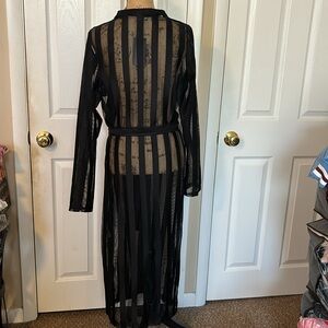 Black Mesh Duster. Take your outfit to the next level. Can be used as a bathing suit cover up too. Never been worn. Says size 1xl but I feel it’s just a large.
