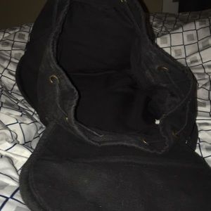 Used for school. Holds text books well. Has cute side pockets along with a well working zipper in the front.