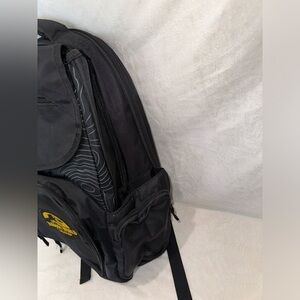 -The backpack has a main compartment with a velcro closure, a front pocket, and side pockets.