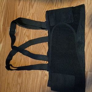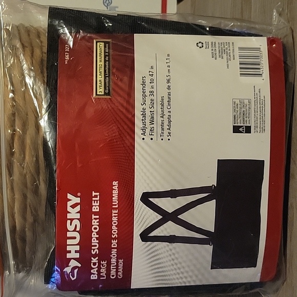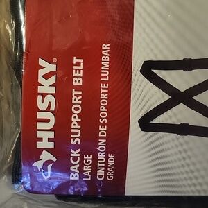Husky brand back support belt, size Large...belt in in good used condition with the exception of a small separation of fabric from the belt..doesn't affect the functionality...