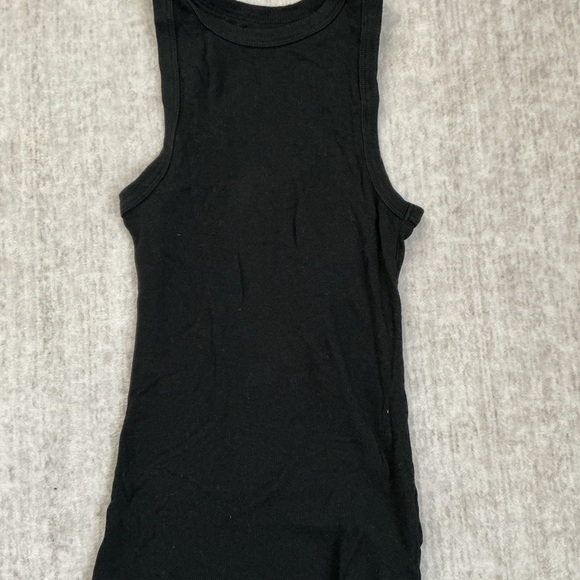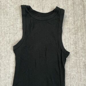 Stylish black sleeveless top. Perfect for layering or wearing alone. Comfortable and versatile.